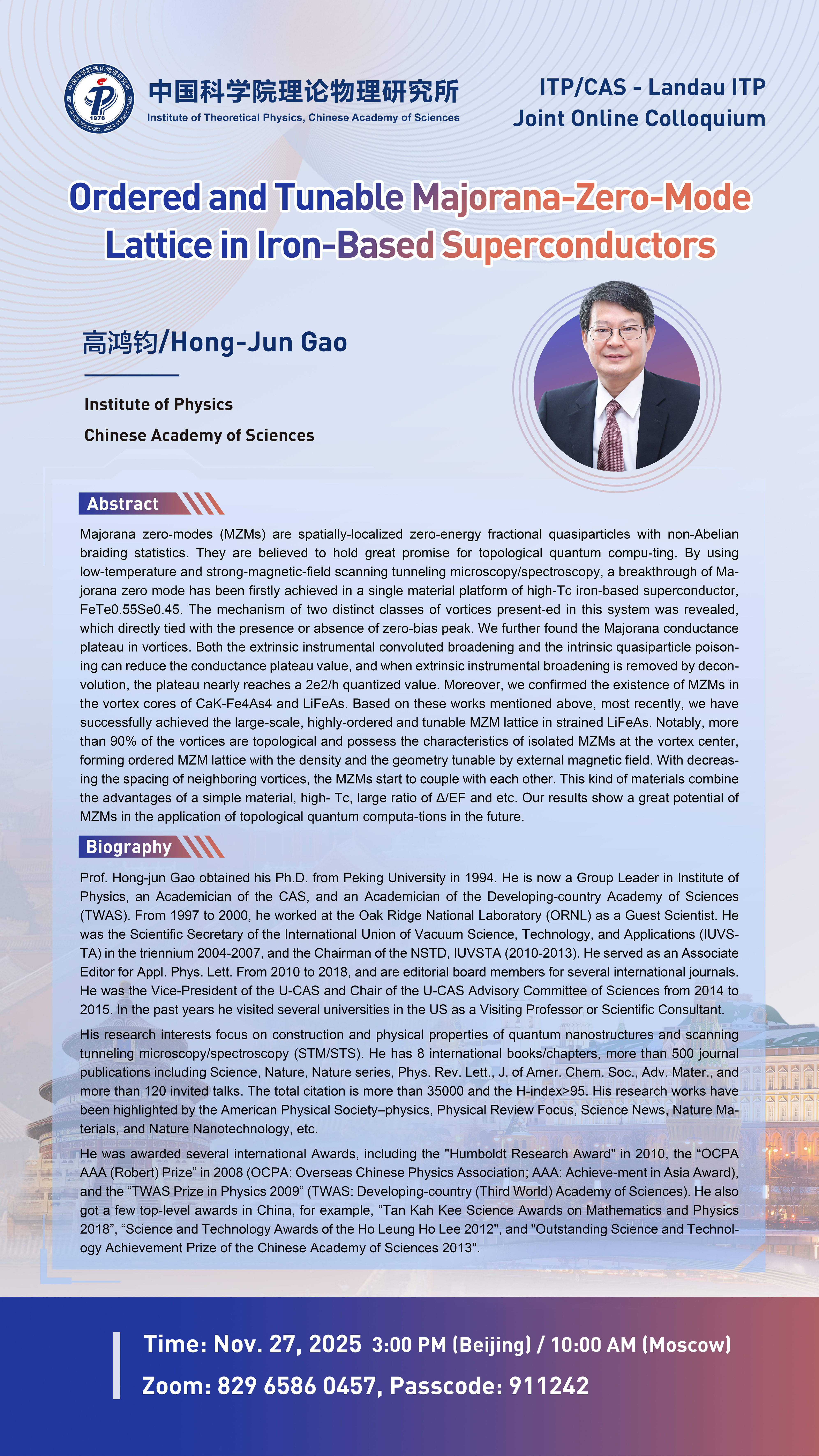 Prof. Yue-Liang Wu, theoretical physicist, is a member of the Chinese Academy of Sciences (CAS), TWAS and the International Eurasian Academy of Sciences. He has served as the director of the International Centre for Theoretical Physics Asia-Pacific (ICTP-AP, UNESCO), the academic vice-president of the University of Chinese Academy of Sciences (UCAS), and the chief scientist of the Taiji Program in Space for Gravitational Wave Detection in China. He graduated from Nanjing University in 1982, received his Ph.D. from the Institute of Theoretical Physics (ITP) at CAS in 1987, worked at Dortmund University and Mainz University in Germany and at Carnegie-Mellon University and Ohio-State University in the USA from 1987 to 1996, and has been working at the Institute of Theoretical Physics at CAS since 1996.